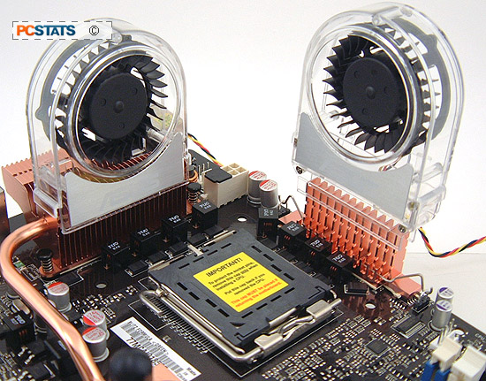If you do go ahead with watercooling your system, Asus includes two 40mm squirrel cage fans which are to be installed on the MOSFET heatsinks. The heatsinks that surround the CPU socket are designed to be cooled by forced airflow, so it's possible that the board could overheat if you go with a passive cooling system. Installation is a breeze, just follow the instructions.